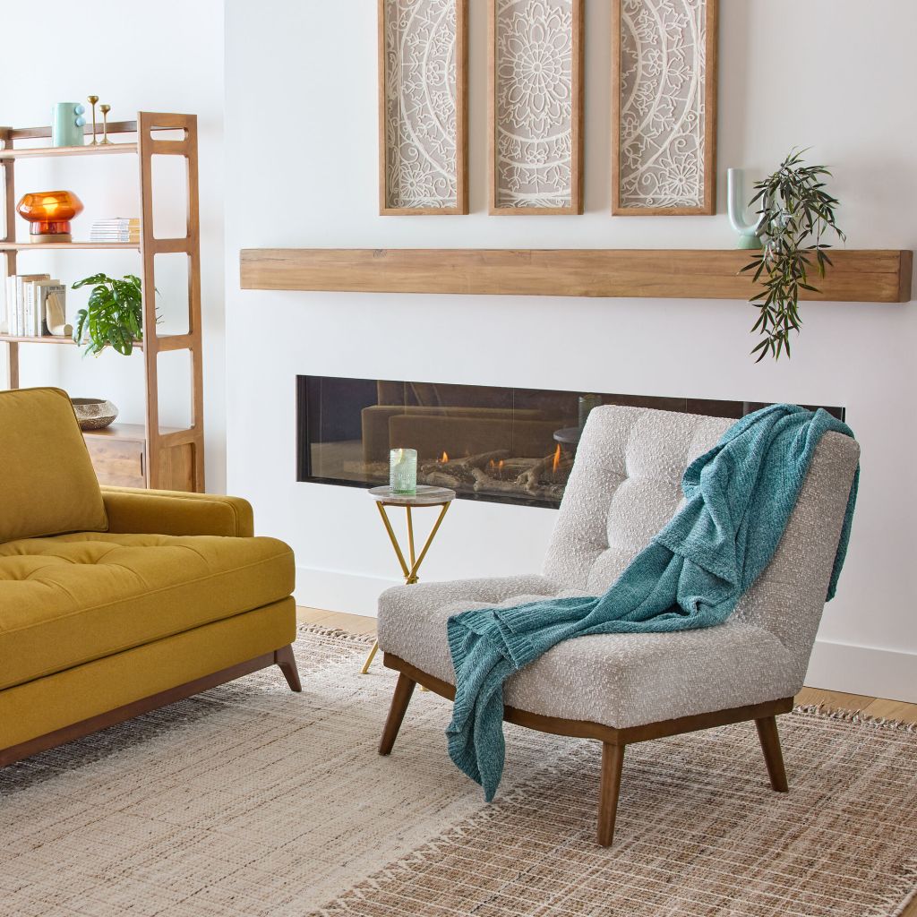 A cozy armchair in chenille-style upholstery commands attention — this selection brings rich texture and sumptuous softness to any space, all while embodying the timeless elegance of classic MCM design, making it a must-have for those who value both comfort and sophistication in their home decor. Its striking design encourages indulgent moments spent with a captivating book or a steaming cup of tea, and it serves as a bold statement piece, effortlessly elevating the overall aesthetic of your living area. The luxurious feel of the chenille fabric exudes refinement, ensuring that this armchair remains a cherished focal point for years to come, inviting friends and family to gather around and relish in its warmth and charm.