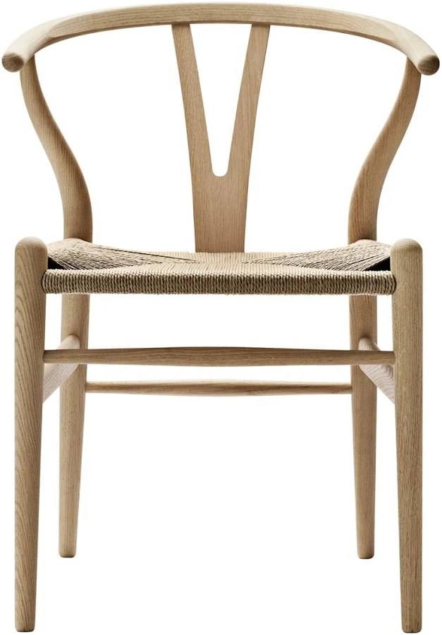 The Wishbone Chair (also called the CH24 or “Y Chair”) was designed by Danish designer Hans J. Wegner in 1949 for Carl Hansen & Søn. It’s considered one of the great classics of Scandinavian modern design and celebrated for its lightweight sculptural form, minimalist elegance, and exceptional craftsmanship. Its distinctive Y-shaped backrest and hand-woven paper-cord seat are hallmarks of the design, and the chair has been in continuous production since 1950.